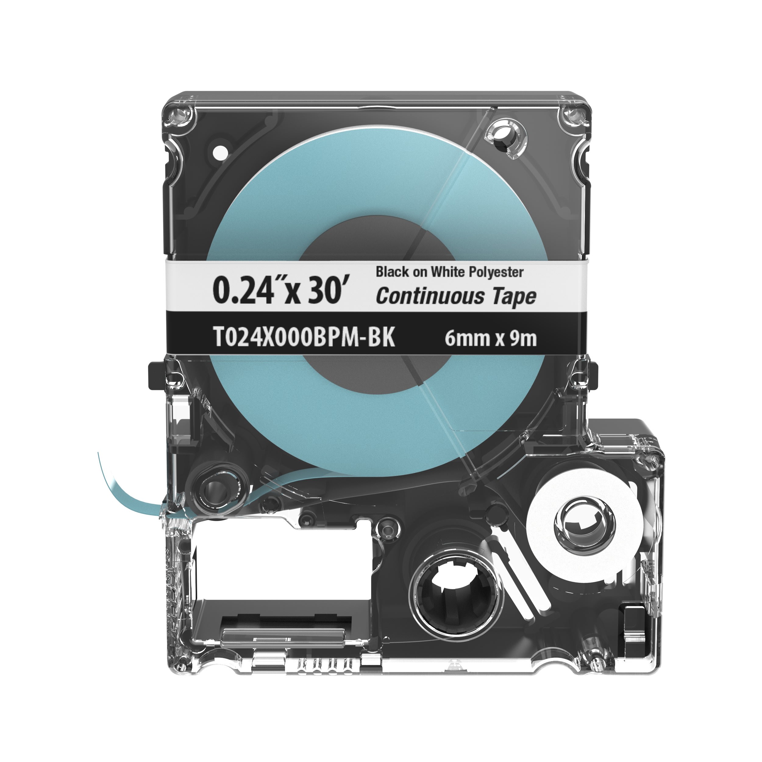 La cassette à ruban continu T024X000BPM-BK comprend à la fois du matériel d'étiquetage et du ruban pour faciliter le changement. Impression personnalisée, à la demande, de marqueurs pour tuyaux ou bacs, indicateurs de tension, panneaux et étiquettes d'identification réseau. Pour des applications d'étiquettes plates uniquement. A utiliser avec les imprimantes MP300, MP200, MP100 et MP75. Polyester. 5,82 mm × 9,1 m. Coloris noir sur blanc. 1 cassette par package.