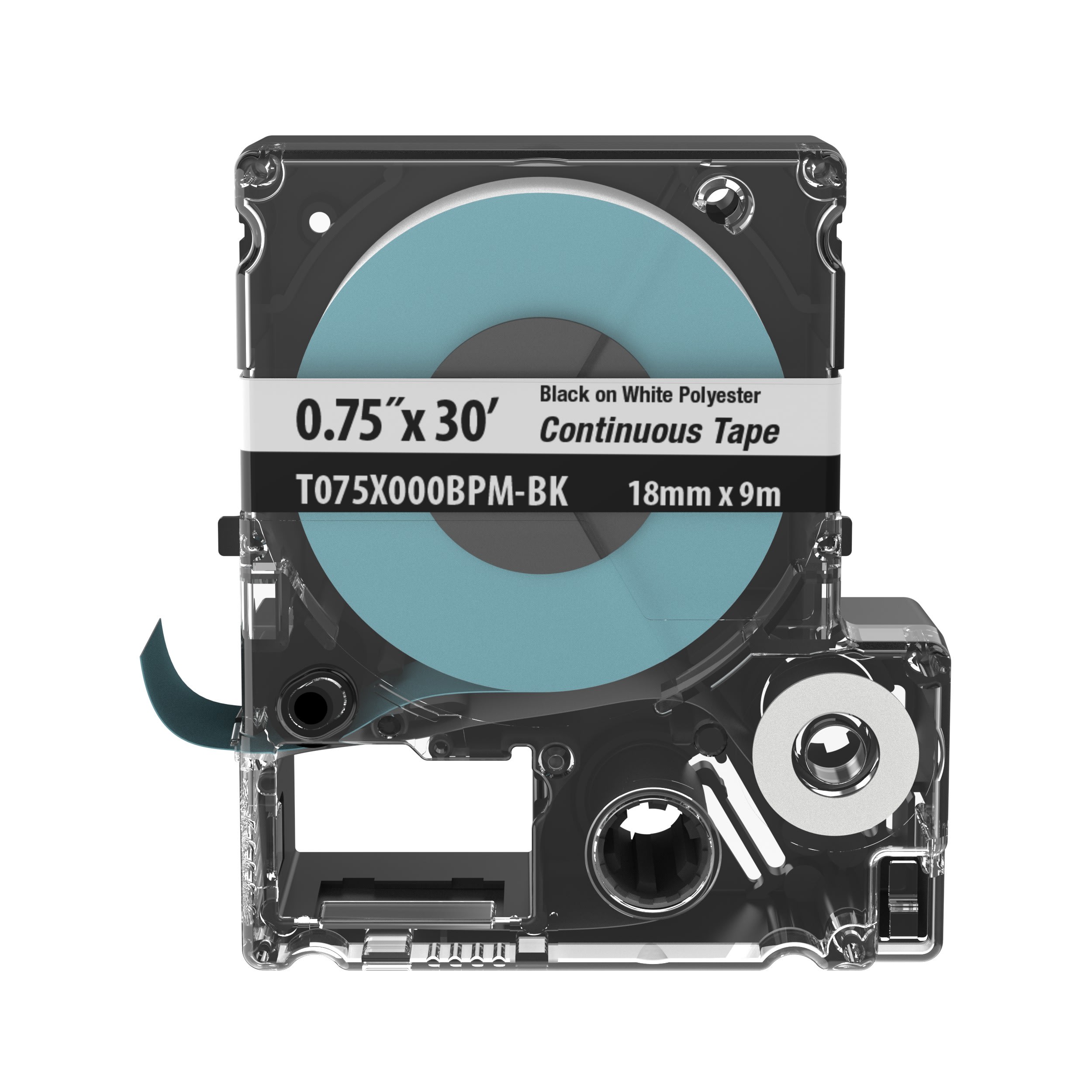La cassette à ruban continu T075X000BPM-BK comprend à la fois du matériel d'étiquetage et du ruban pour faciliter le changement. Impression personnalisée, à la demande, de marqueurs pour tuyaux ou bacs, indicateurs de tension, panneaux et étiquettes d'identification réseau. Pour des applications d'étiquettes plates uniquement. A utiliser avec les imprimantes MP300, MP200, MP100 et MP75. Polyester. 18 mm × 9,1 m. Coloris noir sur blanc. 1 cassette par package.