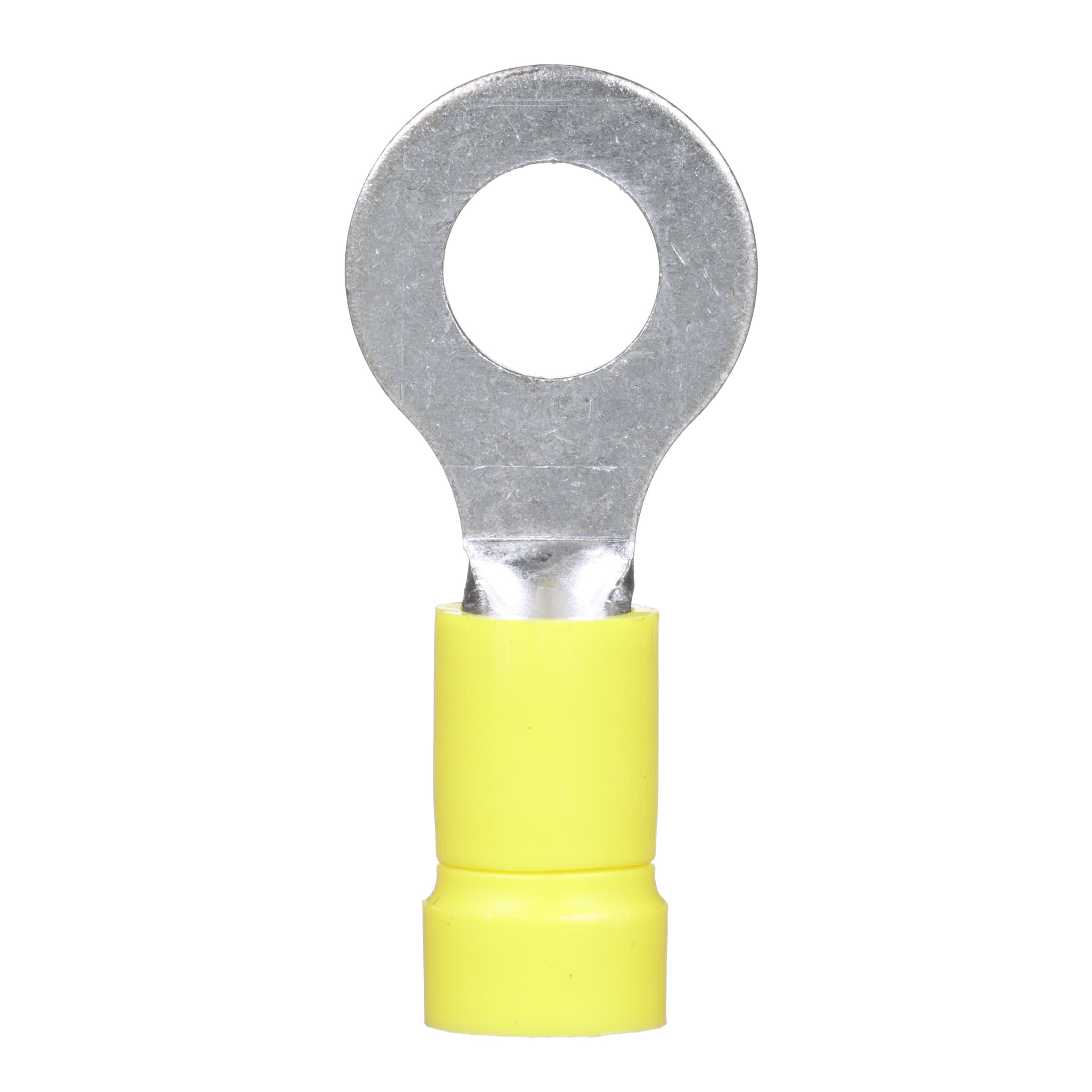 Cosse ronde, 12 – 10 AWG, taille goujon 1/4", vinyle isolé, entrée en entonnoir, conditionnement pratique.
