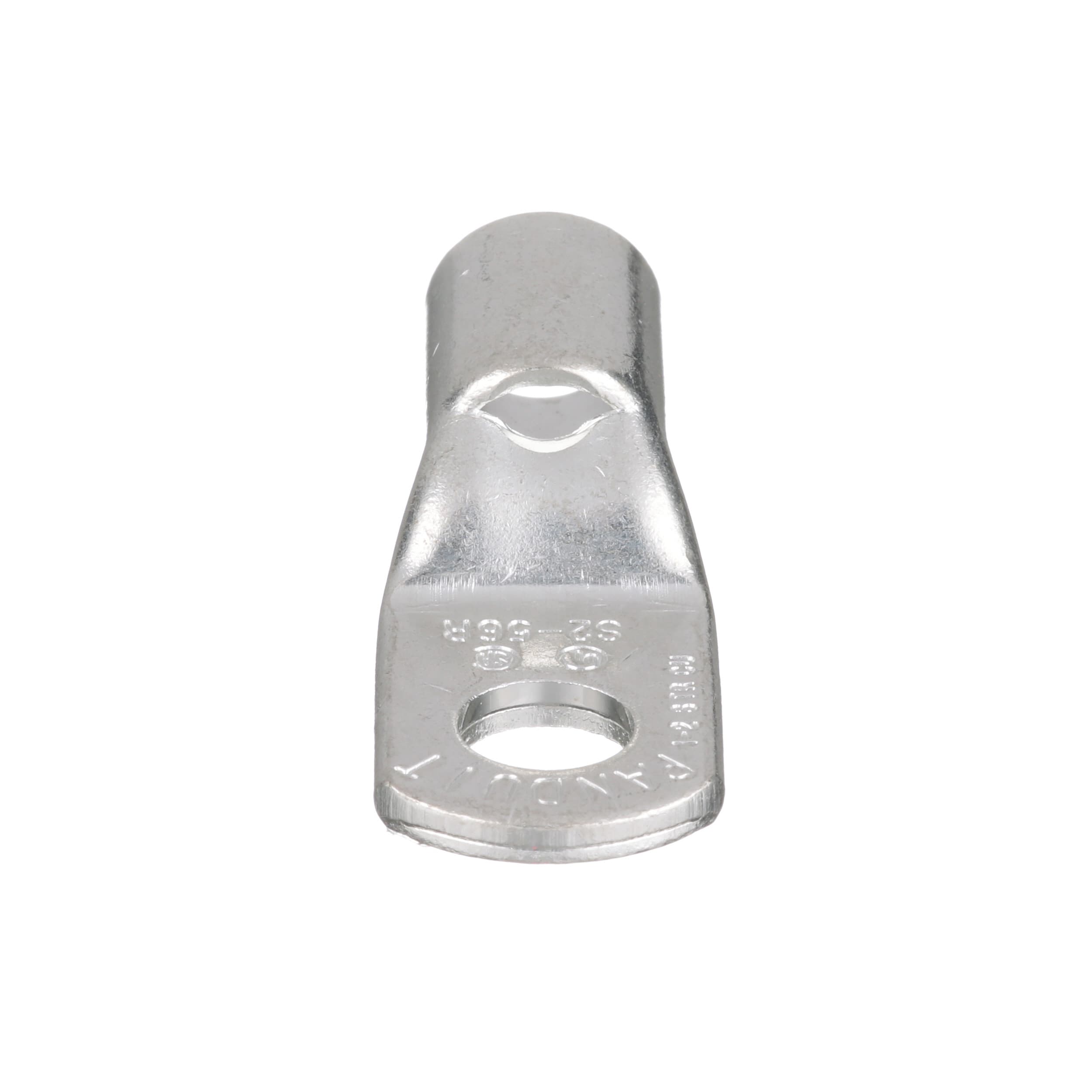 Cosse ronde tubulaire, 2 et 1 AWG, taille de goujon 5/16, sans isolation, conditionnement en vrac.