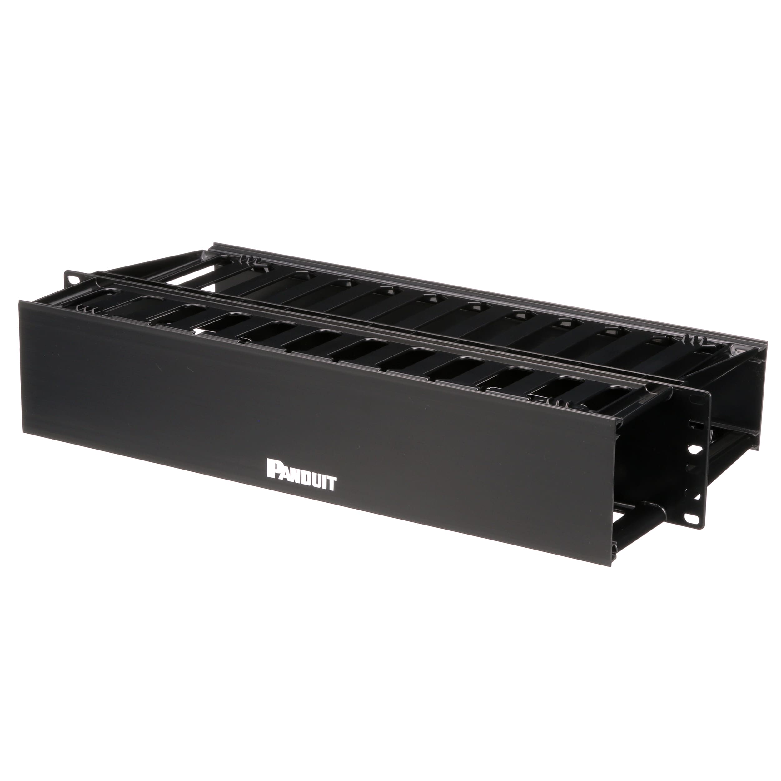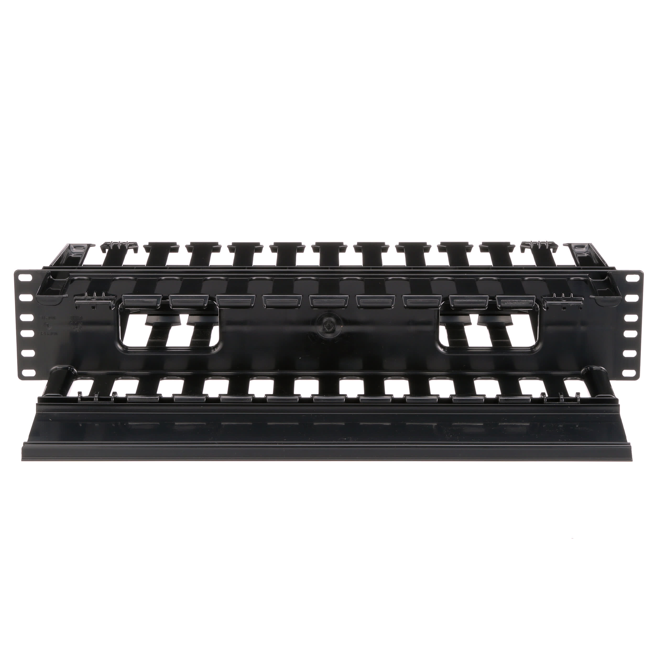 Le guide-câble horizontal PatchLink™ est un moyen soigné et efficace de gérer des câbles sur tout rack ou toute armoire standard EIA de 483 mm. Il permet de gérer des câbles coaxiaux, optiques ou en cuivre. Les bandes flexibles organisent les cordons de raccordement, simplifiant les déplacements, les ajouts et les changements, et la conception « fermée » sécurise les câbles dans la filière. Guide-câble à double face de 2 U, avec capots avant et arrière à double charnière et de coloris noir.