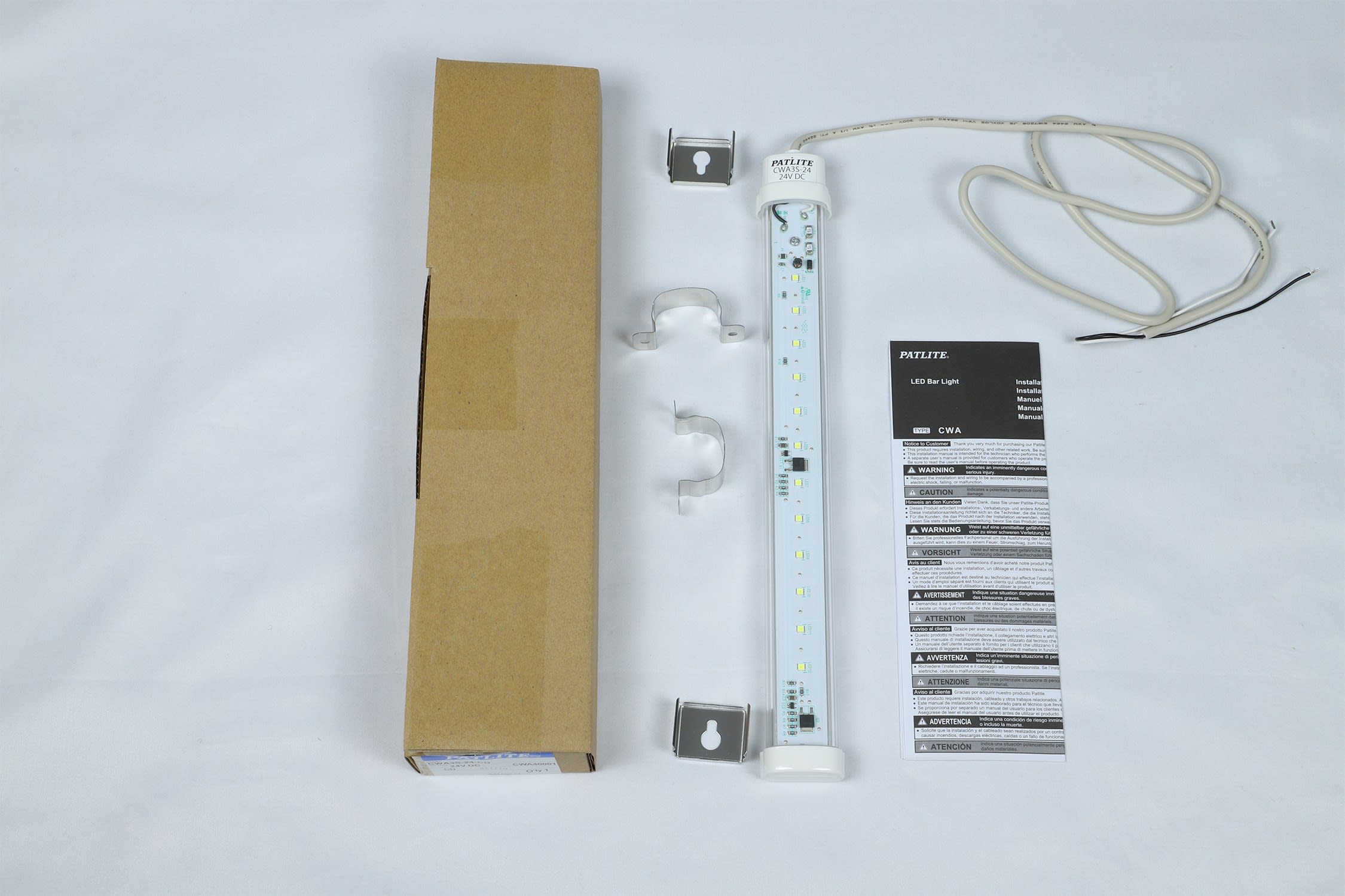 Patlite Europe GMBH - Eclairage LED, 24VDC, lumière du jour, 6500K, 300mm, câble 1m, IP65 - CWA3S-24-CD