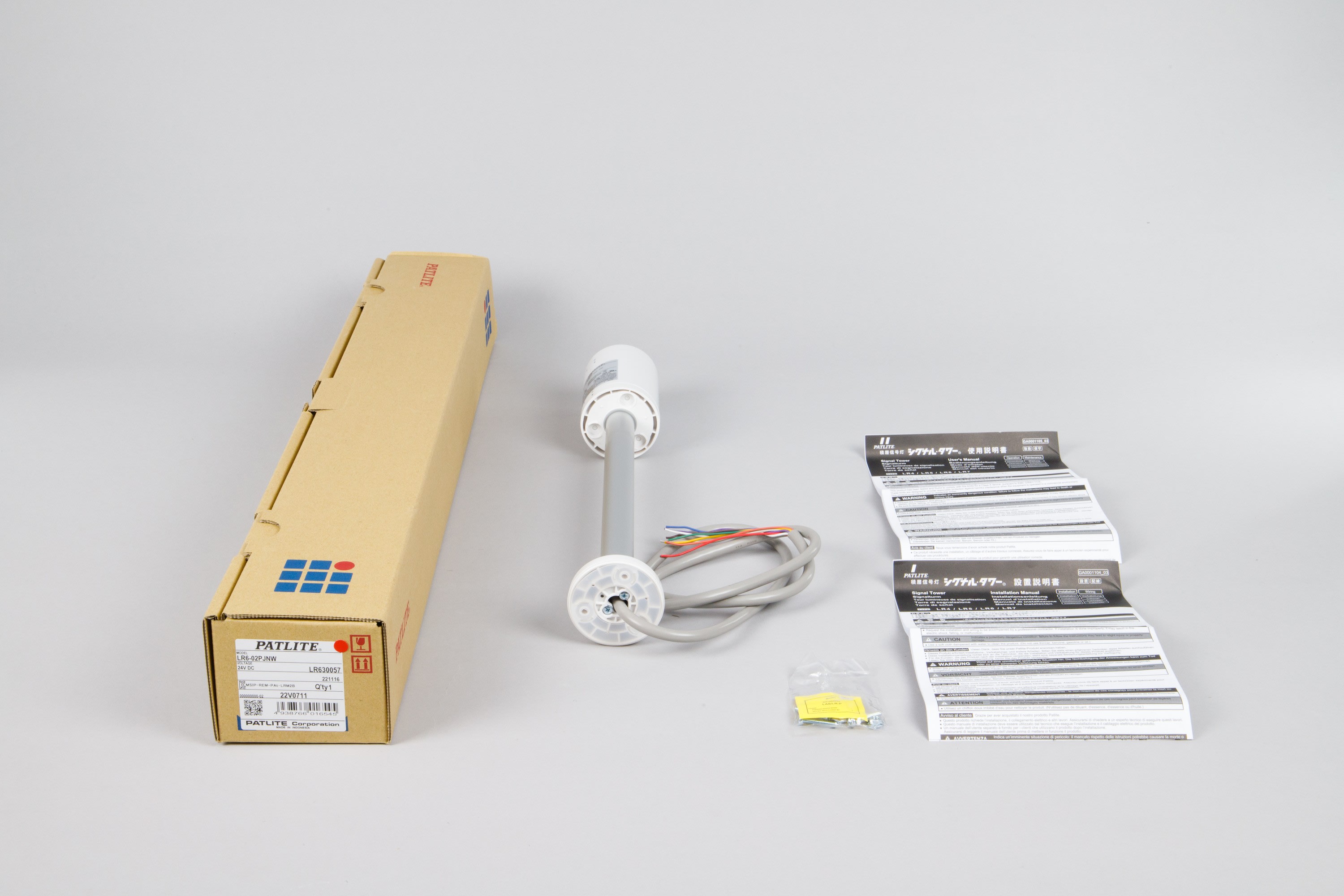 Patlite Europe GMBH - Embase blanche, 24VDC, 60mm, tube et pied circulaire, câble, IP65 - LR6-02PJNW
