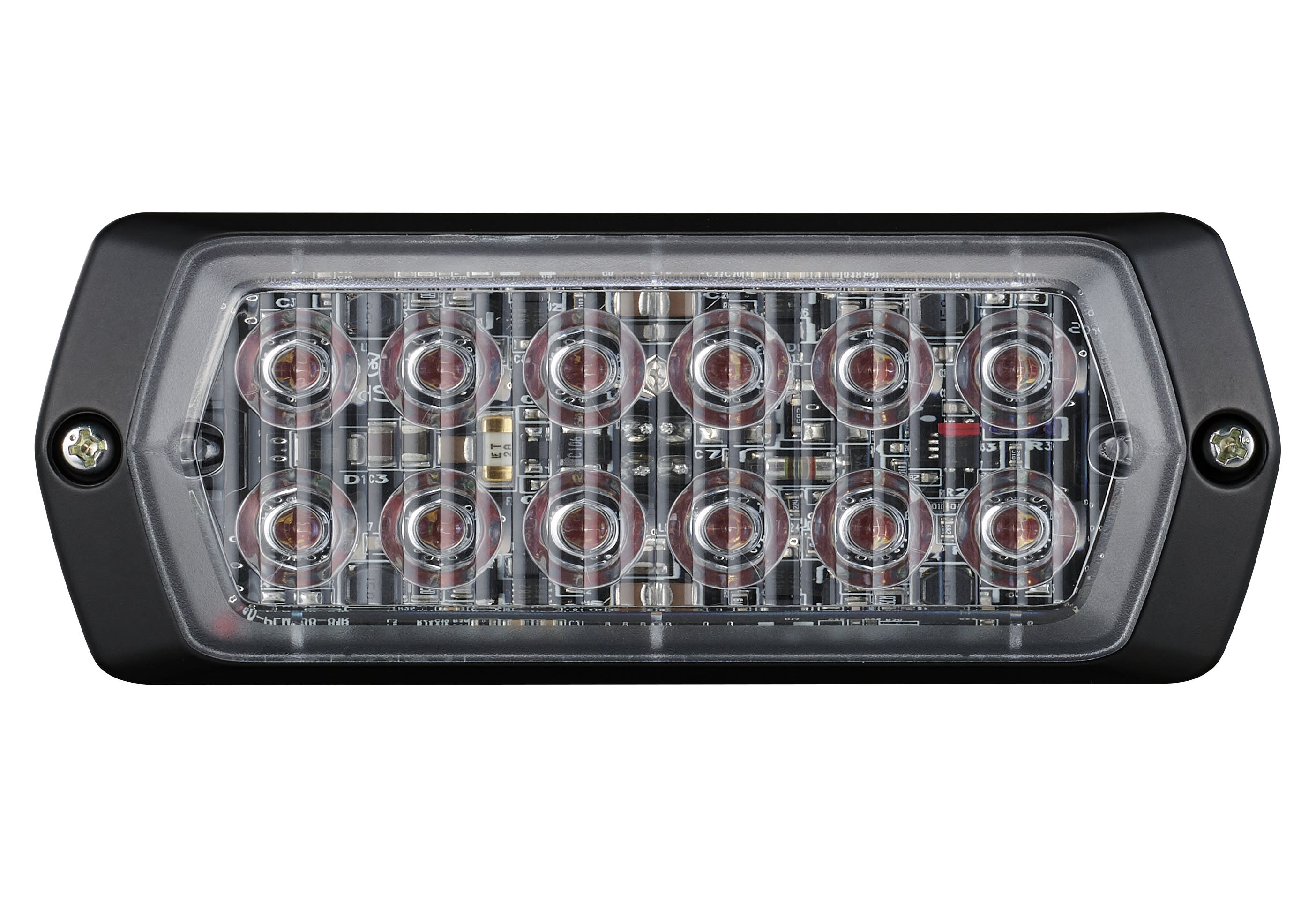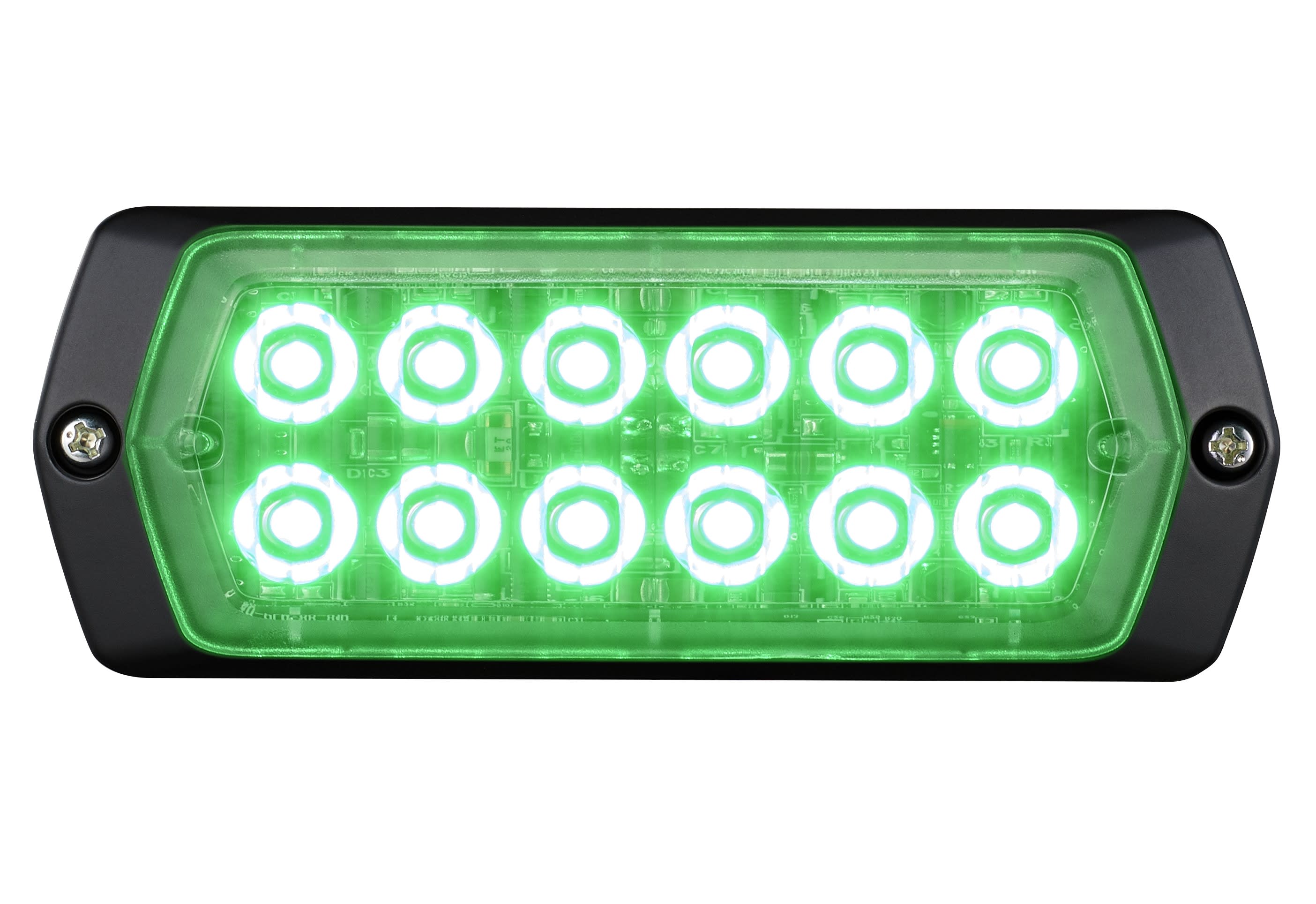 Voyant d’avertissement extrême vert avec divers motifs de flash. Durable 100 000 heures sans entretien. Possibilité de chainer plusieurs unités et régler le fonctionnement en simultané ou alternatif. L 114,4mm, P 13,5mm, H 43,4mm. 2x6LED.