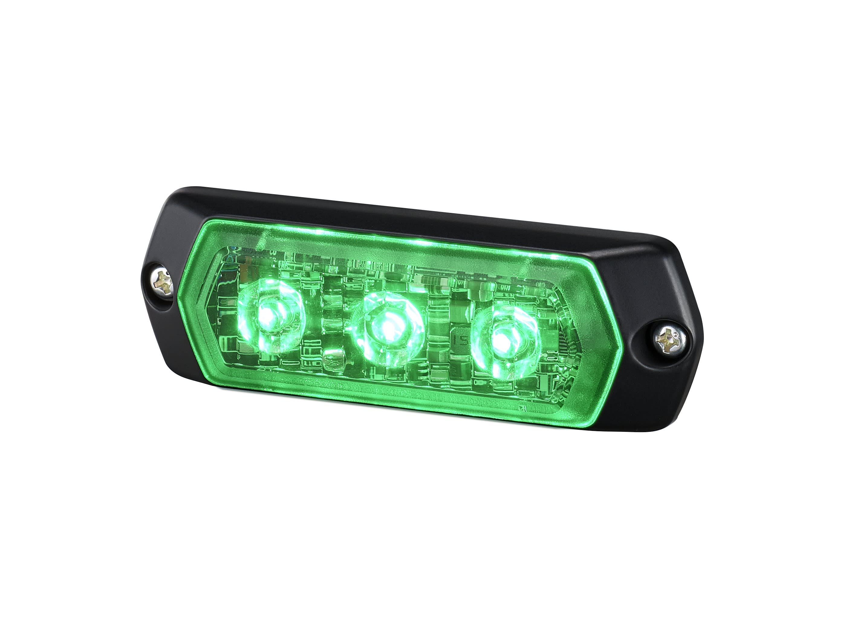 Voyant d’avertissement extrême vert avec divers motifs de flash. Durable, 100 000 heures sans entretien. Possibilité de chainer plusieurs unités et régler le fonctionnement en simultané ou alternatif. L 86mm, P 13,5mm, H 28mm. 3 LED.