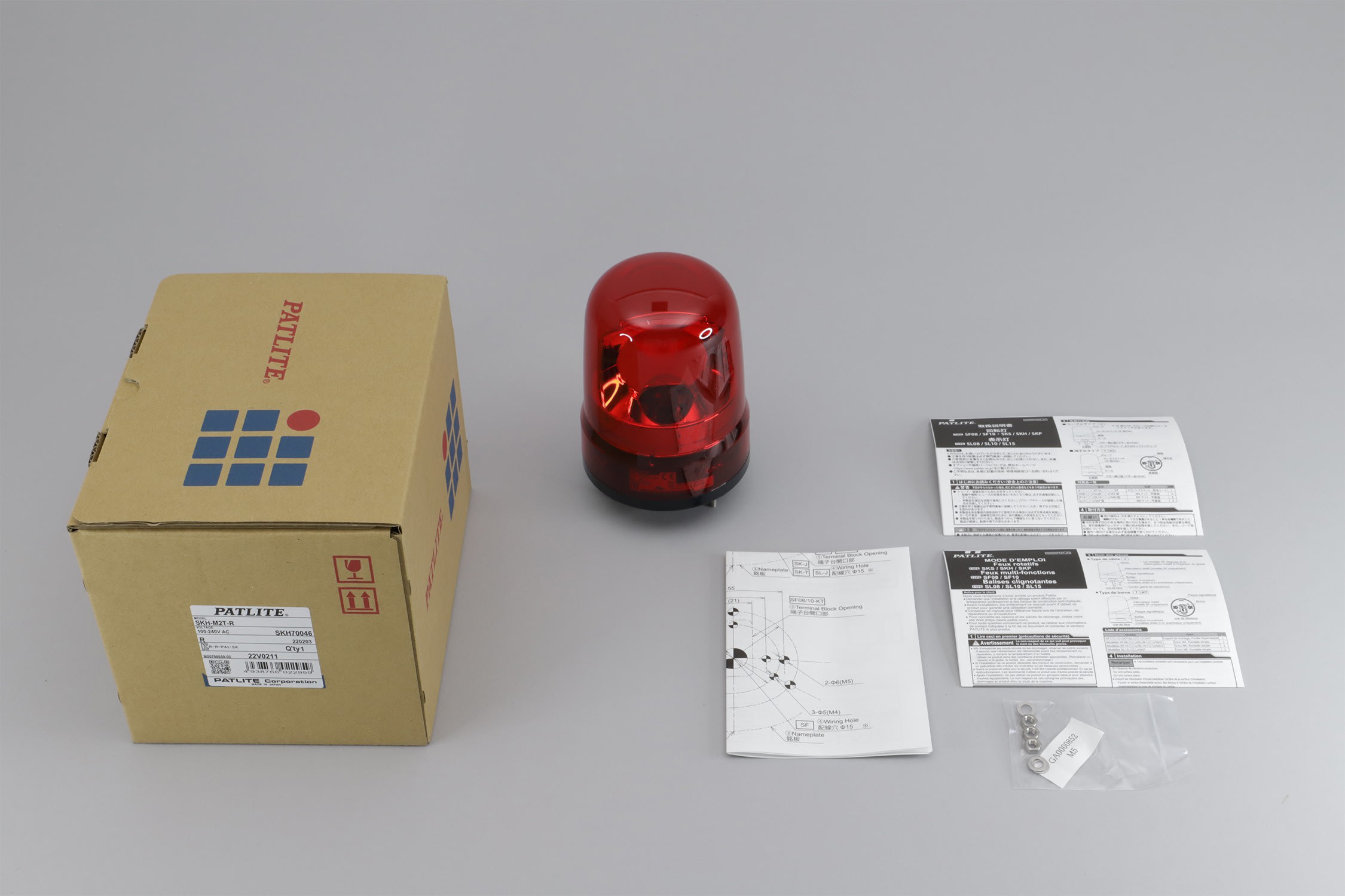 Patlite Europe GMBH - Gyrophare, rouge, 100-240VAC, 100mm, bornier, IP23, IP65 (avec joint) - SKH-M2T-R