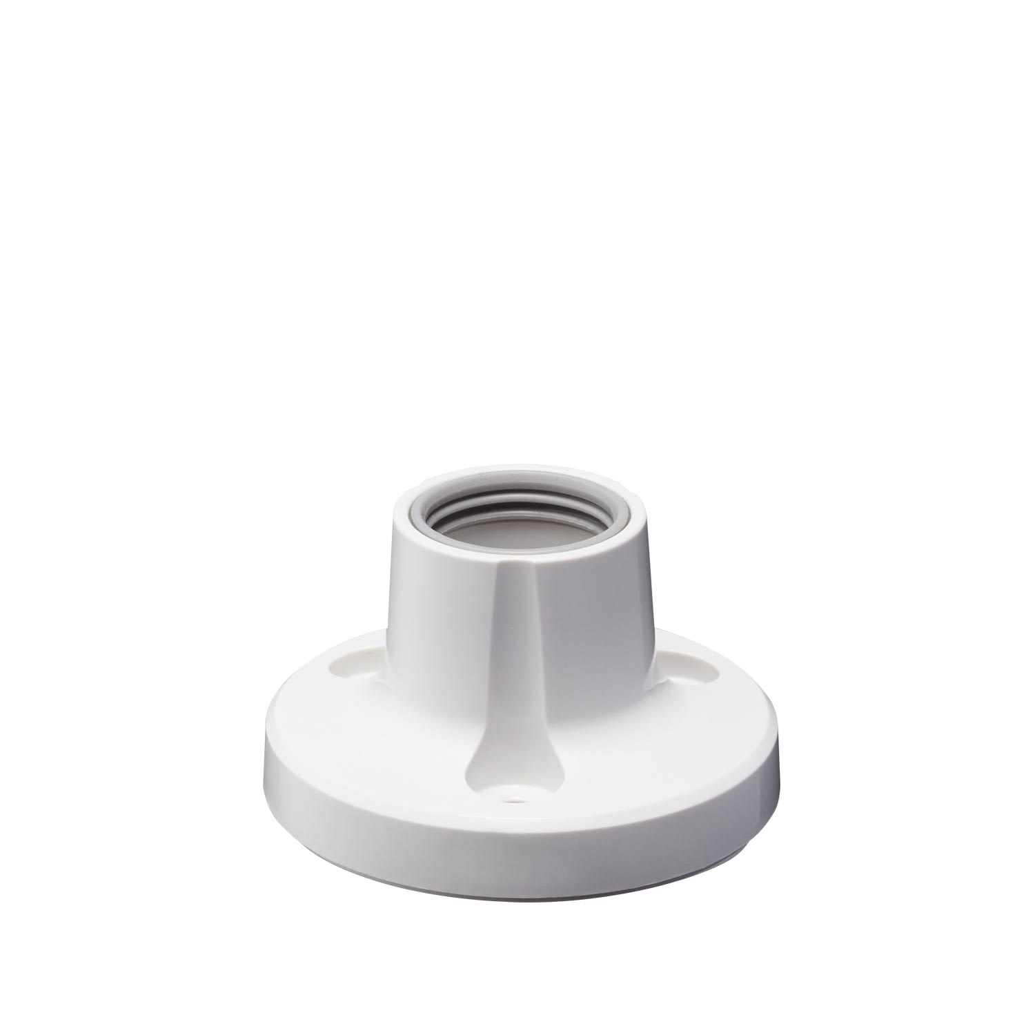 Support pied circulaire blanc pour signalisation lumineuse montée sur tube. Matériau : Polycarbonate. Compatible POLE22-0100AN, POLE22-0300AN. Diamètre 60mm, hauteur 35mm. Livré avec tous les modèles LR-PJ.
