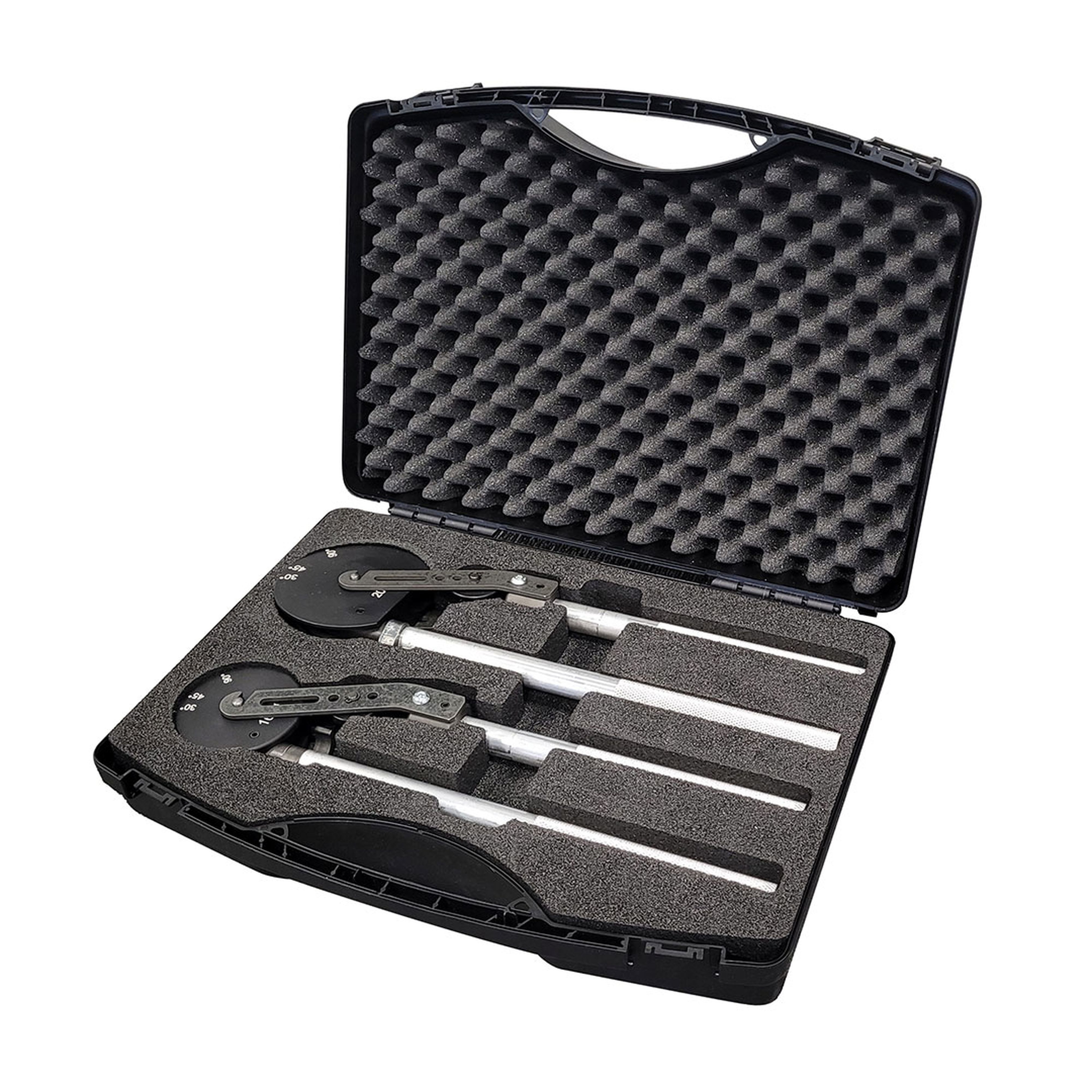 Coffret de 2 cintreuses : 1 pour tube multicouche de diamètre 16 mm et une pour tube multicouche de diamètre 20 mm. Dim. d?une cintreuse : L 360 x l 75/90 x H 45 mm.