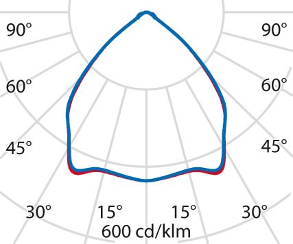 faible éblouissement selon EN 12464-1 (UGR Inf. à 19):