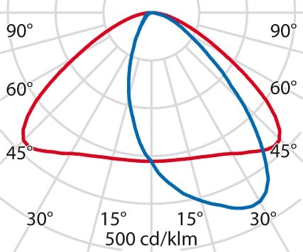faible éblouissement selon EN 12464-1 (UGR Inf. à 19):