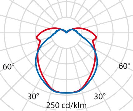 faible éblouissement selon EN 12464-1 (UGR Inf. à 19):