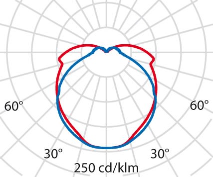 faible éblouissement selon EN 12464-1 (UGR Inf. à 19):