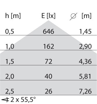 faible éblouissement selon EN 12464-1 (UGR Inf. à 19):