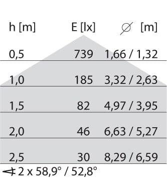 faible éblouissement selon EN 12464-1 (UGR Inf. à 19):