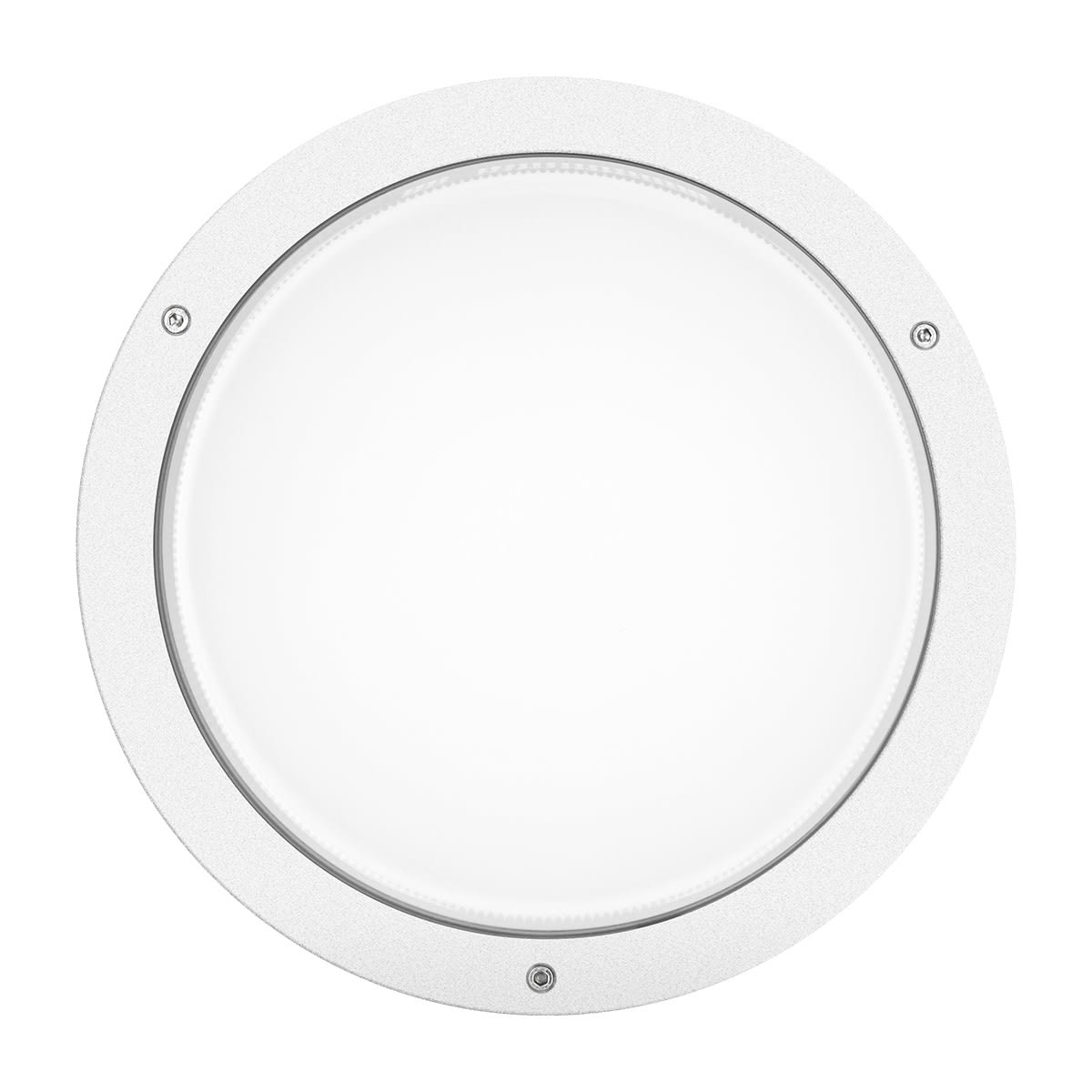 Appareil à LED pour installation en applique et au plafond, aussi bien à l'intérieur qu'à l'extérieur, composé de: Boîtier et cercle en aluminium moulé sous pression et peint / Diffuseur en verre pressé et peint à l’intérieur / Joints en silicone antivieillissement / Appareil prédisposé pour le raccordement en cascade / Vis de fermeture en acier inox