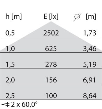 dépréciation flux lumineux, durée d'utilisation moyenne 35 000 h, temp.25 °C: