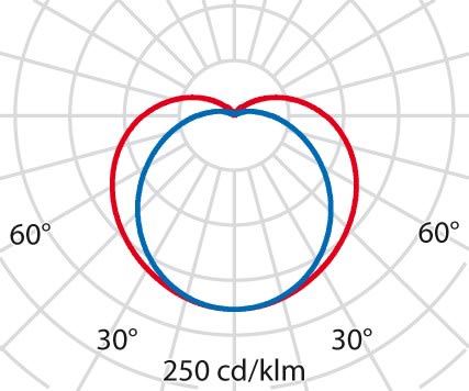 faible éblouissement selon EN 12464-1 (UGR Inf. à 19):