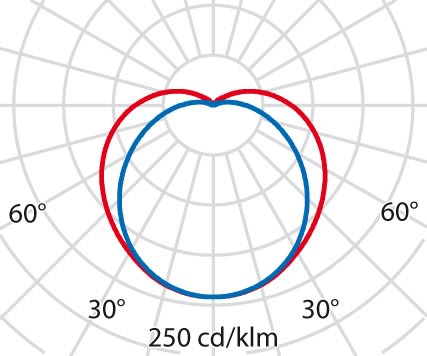 faible éblouissement selon EN 12464-1 (UGR Inf. à 19):