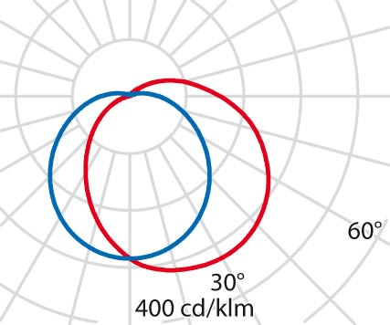 faible éblouissement selon EN 12464-1 (UGR Inf. à 19):