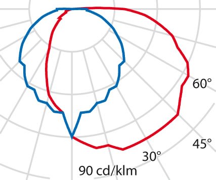 faible éblouissement selon EN 12464-1 (UGR Inf. à 19):