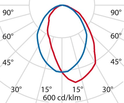faible éblouissement selon EN 12464-1 (UGR Inf. à 19):
