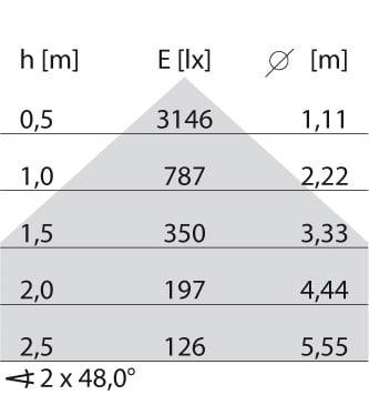 dépréciation flux lumineux, durée d'utilisation moyenne 35 000 h, temp.25 °C: