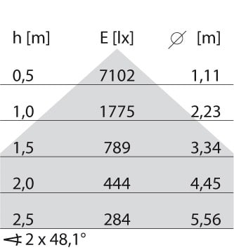 faible éblouissement selon EN 12464-1 (UGR Inf. à 19):