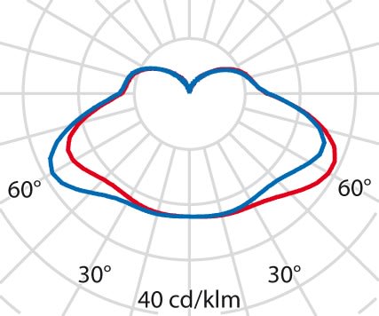 faible éblouissement selon EN 12464-1 (UGR Inf. à 19):