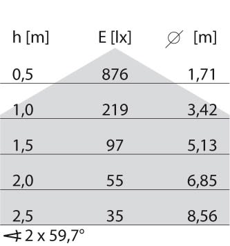 dépréciation flux lumineux, durée d'utilisation moyenne 35 000 h, temp.25 °C: