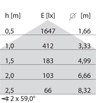 faible éblouissement selon EN 12464-1 (UGR Inf. à 19):
