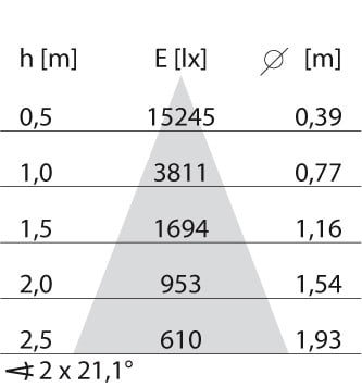 faible éblouissement selon EN 12464-1 (UGR Inf. à 19):