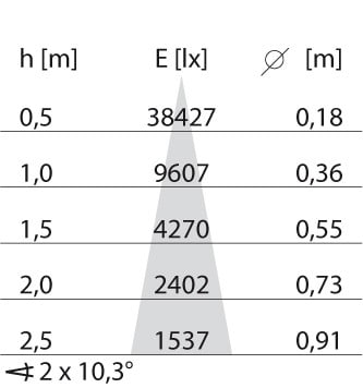 faible éblouissement selon EN 12464-1 (UGR Inf. à 19):