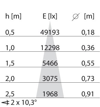 dépréciation flux lumineux, durée d'utilisation moyenne 100 000h, temp.25 °C: