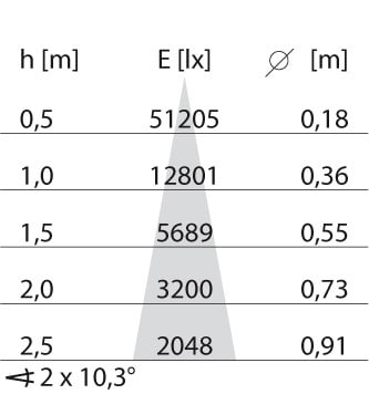 dépréciation flux lumineux, durée d'utilisation moyenne 100 000h, temp.25 °C: