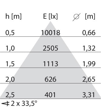 faible éblouissement selon EN 12464-1 (UGR Inf. à 19):