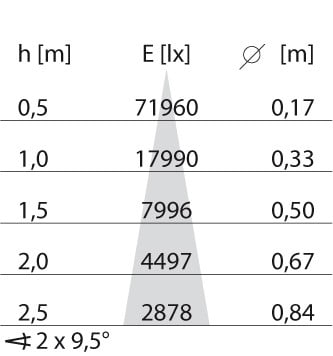 faible éblouissement selon EN 12464-1 (UGR Inf. à 19):