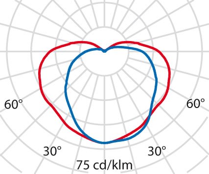 faible éblouissement selon EN 12464-1 (UGR Inf. à 19):