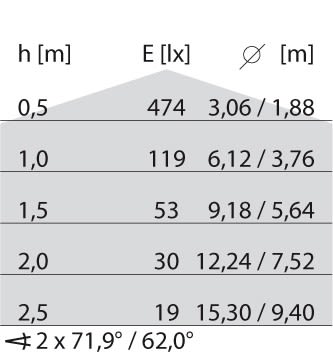 dépréciation flux lumineux, durée d'utilisation moyenne 35 000 h, temp.25 °C: