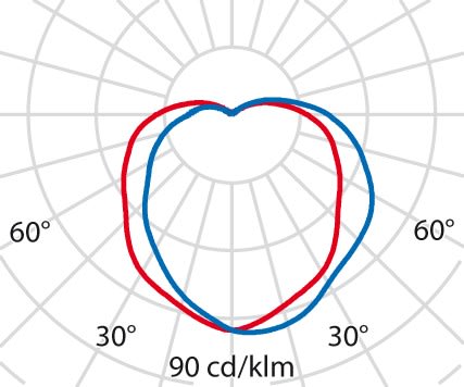 faible éblouissement selon EN 12464-1 (UGR Inf. à 19):