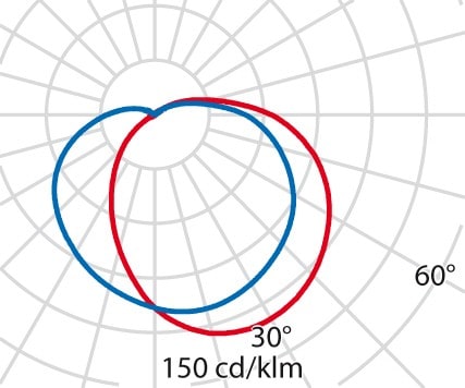 faible éblouissement selon EN 12464-1 (UGR Inf. à 19):