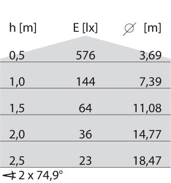 dépréciation flux lumineux, durée d'utilisation moyenne 75 000 h, temp.25 °C: