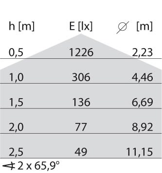 dépréciation flux lumineux, durée d'utilisation moyenne 35 000 h, temp.25 °C: