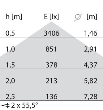 faible éblouissement selon EN 12464-1 (UGR Inf. à 19):