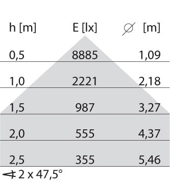 faible éblouissement selon EN 12464-1 (UGR Inf. à 19):