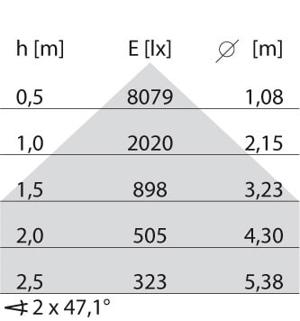 faible éblouissement selon EN 12464-1 (UGR Inf. à 19):