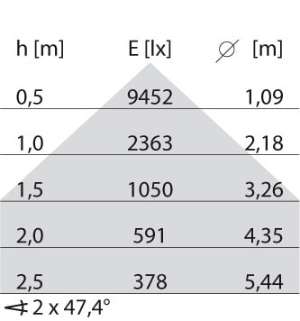 faible éblouissement selon EN 12464-1 (UGR Inf. à 19):