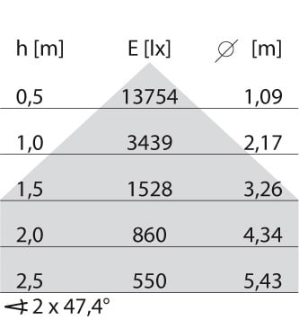 faible éblouissement selon EN 12464-1 (UGR Inf. à 19):