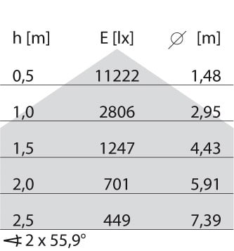faible éblouissement selon EN 12464-1 (UGR Inf. à 19):