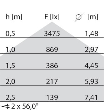 faible éblouissement selon EN 12464-1 (UGR Inf. à 19):