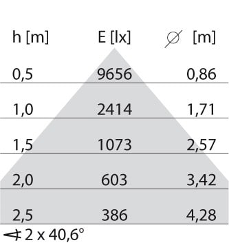 faible éblouissement selon EN 12464-1 (UGR Inf. à 19):